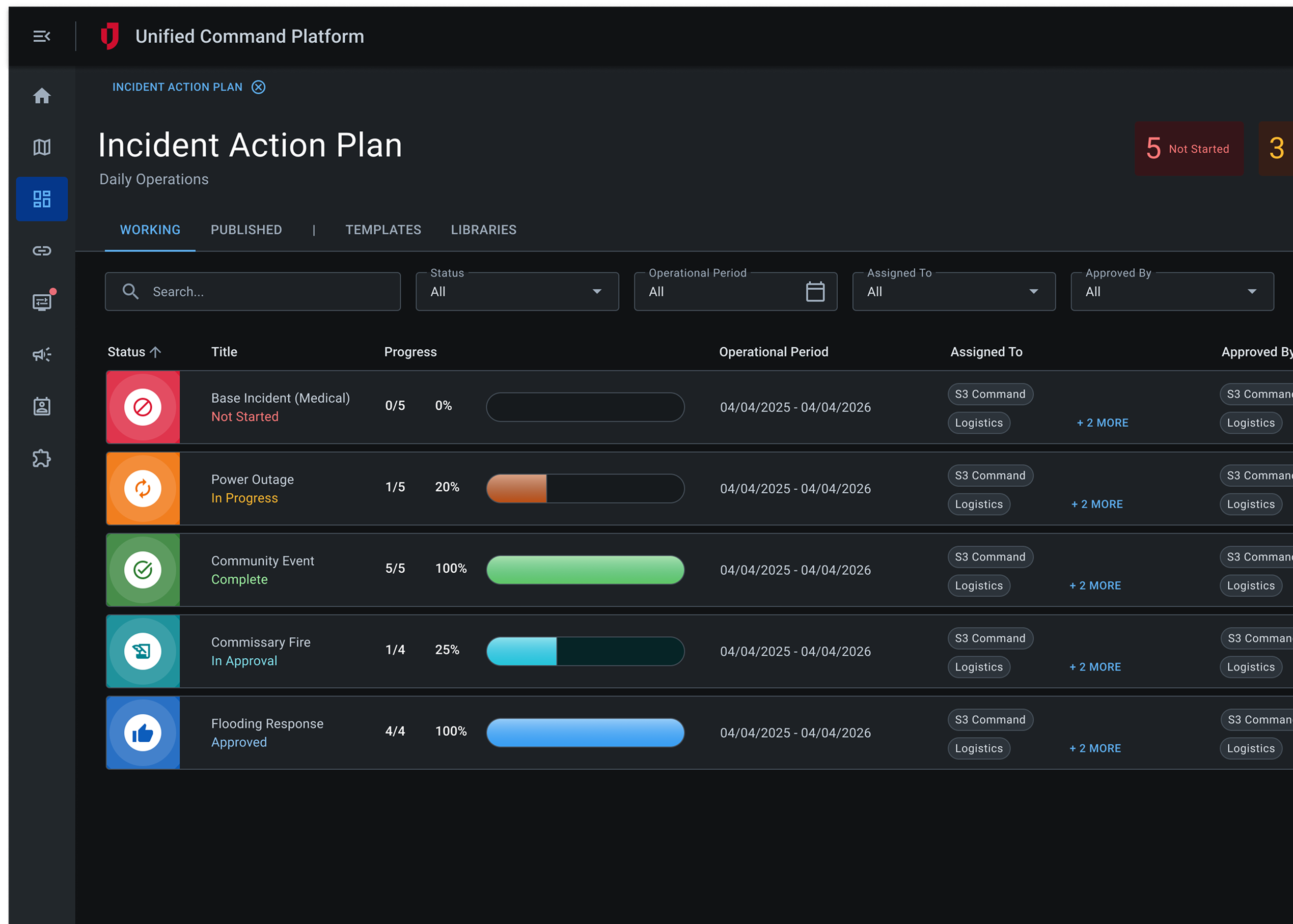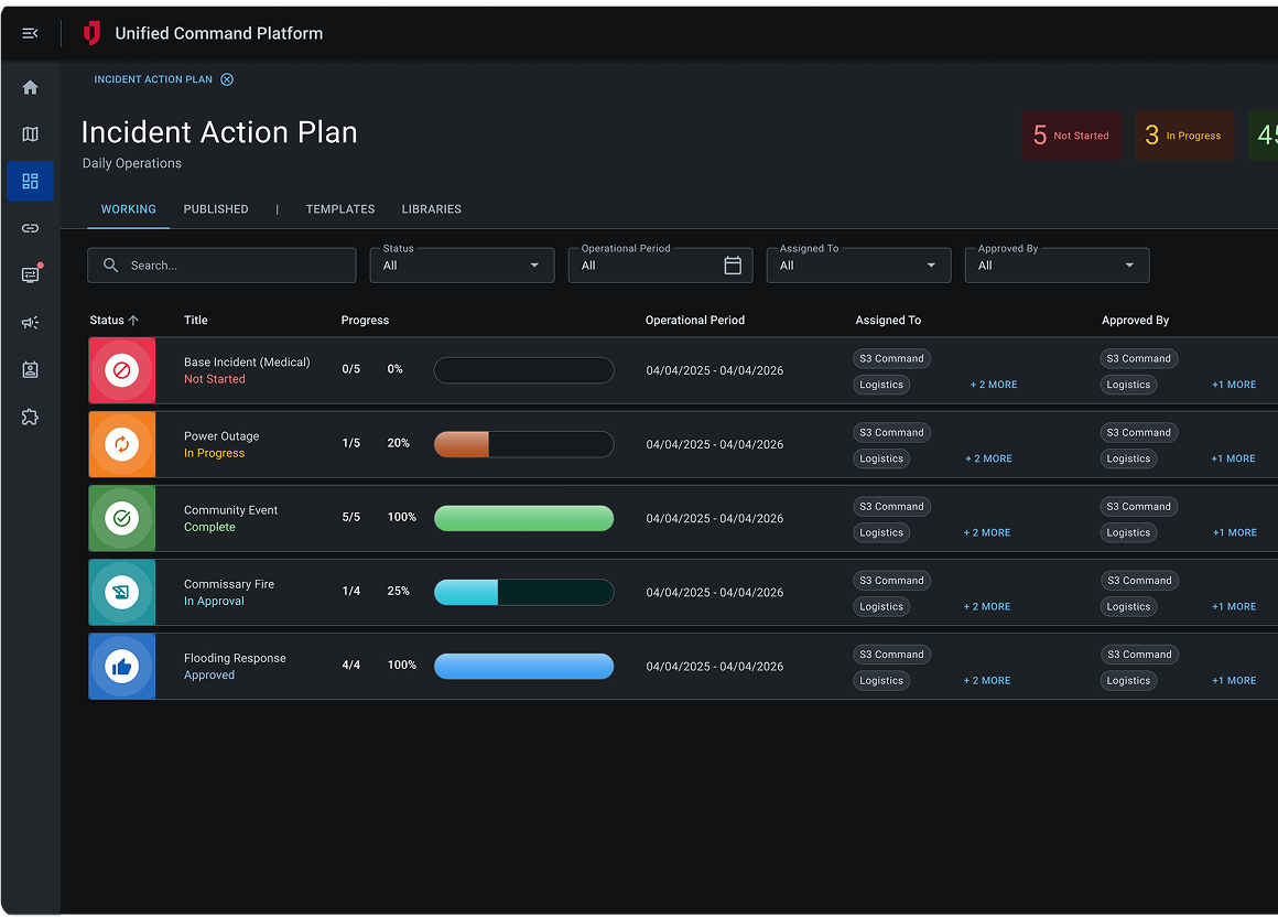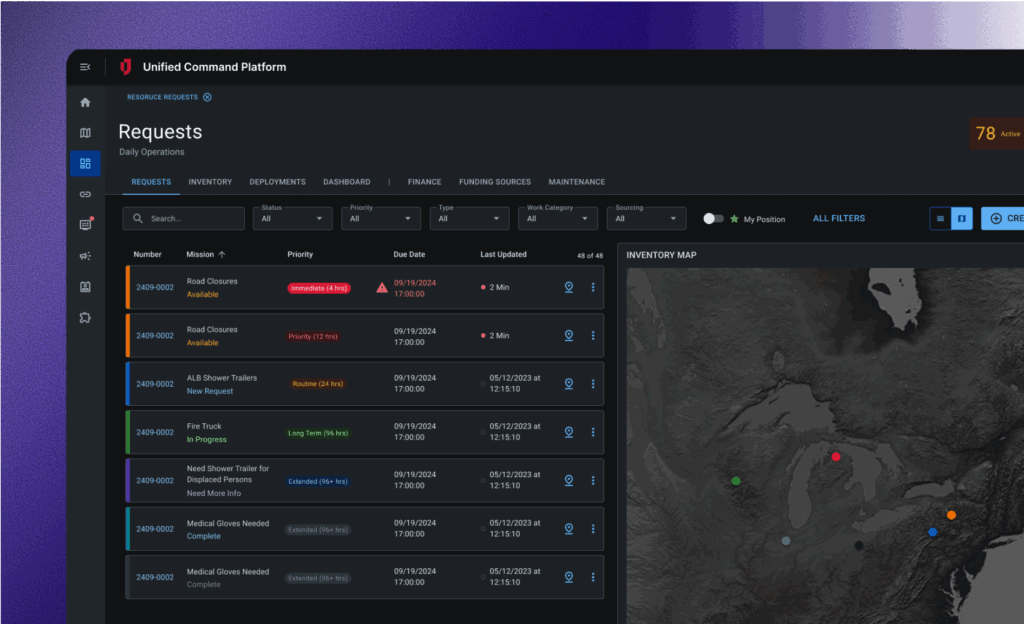 Crisis responses require fast, accurate information. UCP delivers a Common Operating Picture (COP) to streamline emergency workflows, including resource requests, incident tracking, damage assessments, and ensuring readiness for national crises.